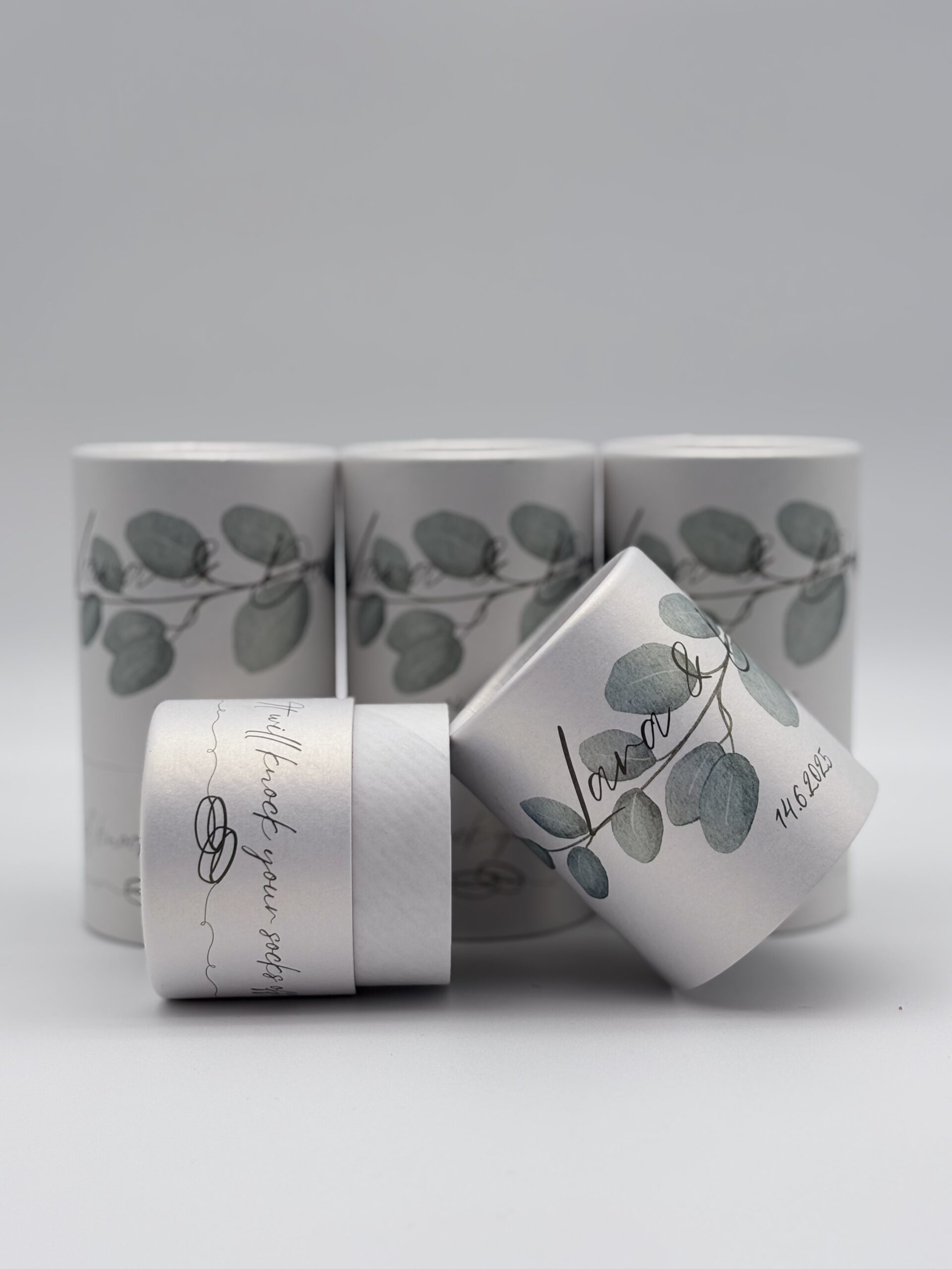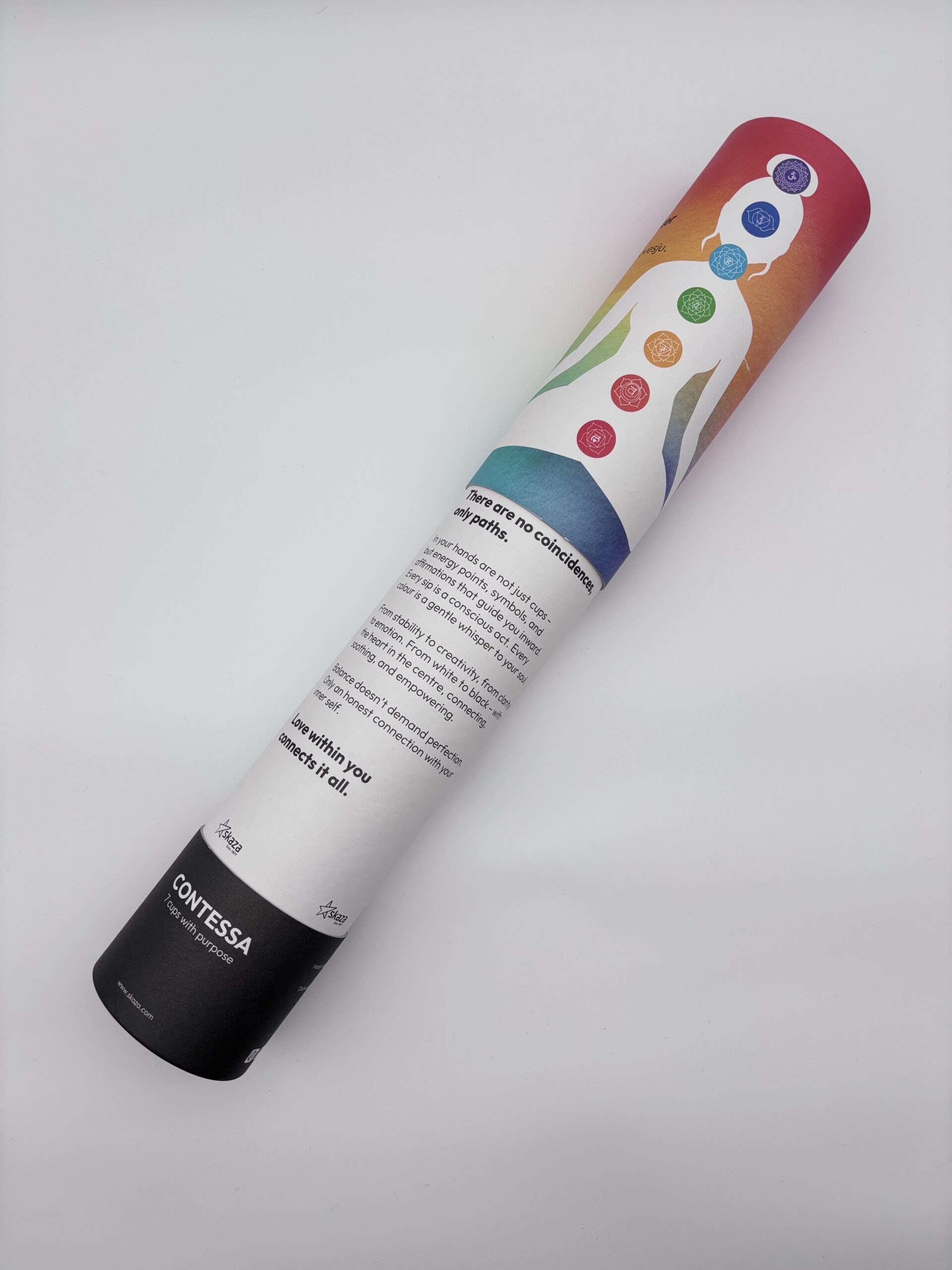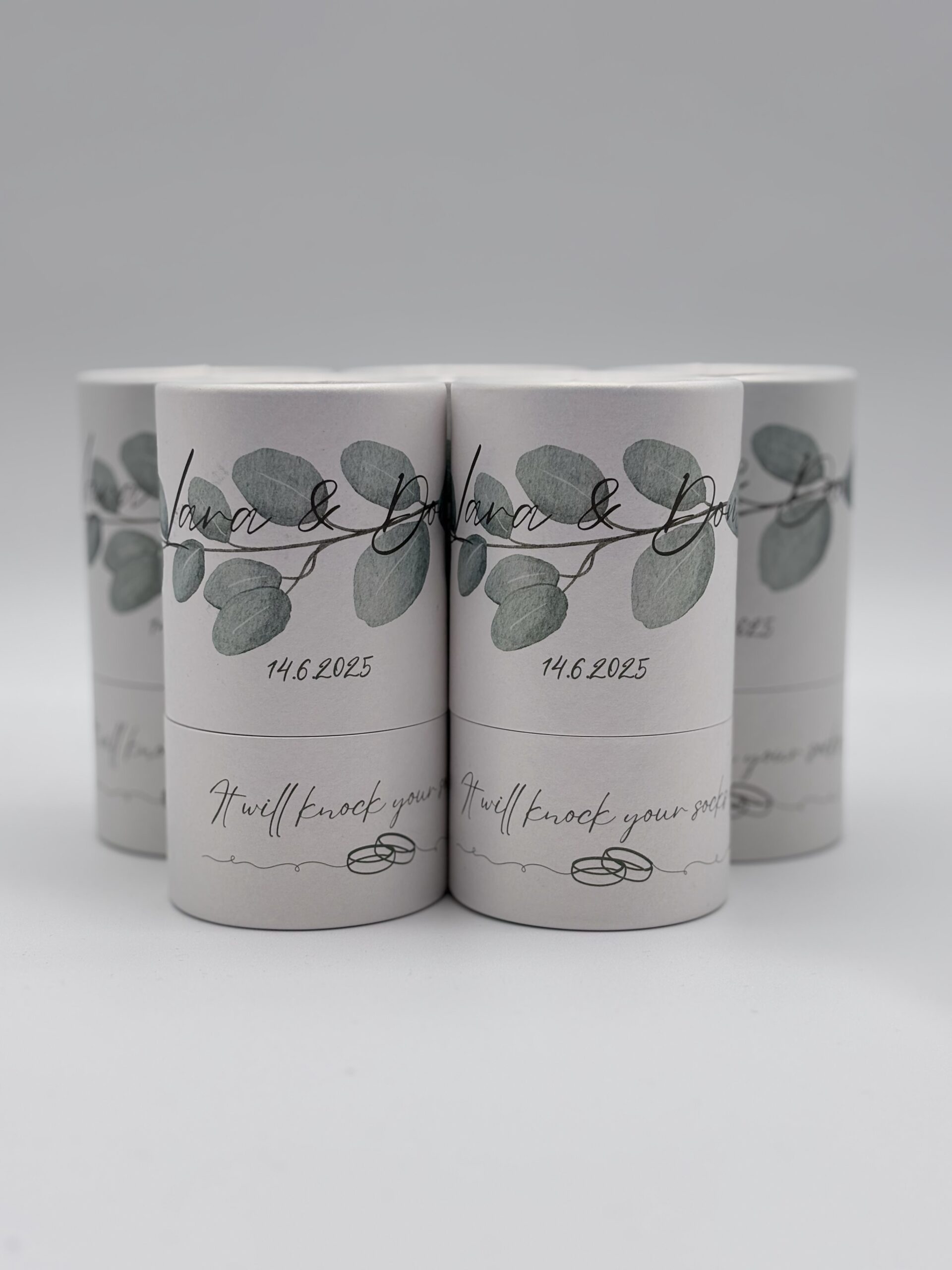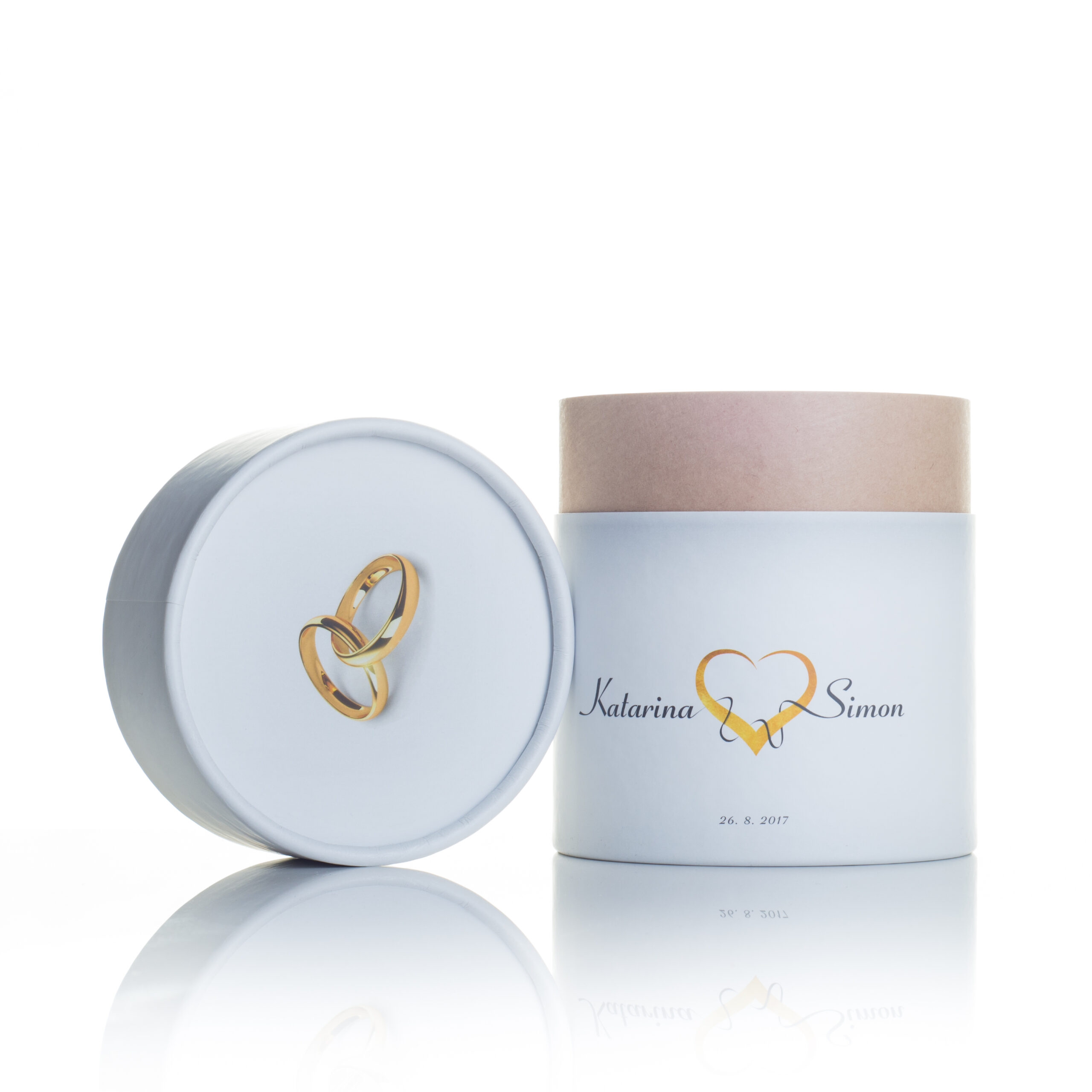 Embalaža je izdelana iz zunanjega plašča in notranjega povezovalnega vratu. Zunanji plašč je razdeljen na spodnji del (dno) in zgornji (pokrov). Spodnji del plašča je zalepljen z povezovalnim vratom. Pokrov – zgornji del zunanjega plašča je snemljiv. Zapiranje je lahko izvedeno z pločevino, kartonskim robljenjem ali pa PE pokrovi. Kartonski diski so lahko zunaj pokaširani z etiketo enake kvalitete kot ovojna etiketa. Zunanja površina šatulje je lahko spiralno navita ali paralelno kaširana z ovojno etiketo. Izdelujemo jih v naslednjih notranjih premerih : fi 55/58, 60/62, 64/67, 67/70, 77/80, 99/102, 102/105,120/123, 151/154 mm – zapiranje karton.