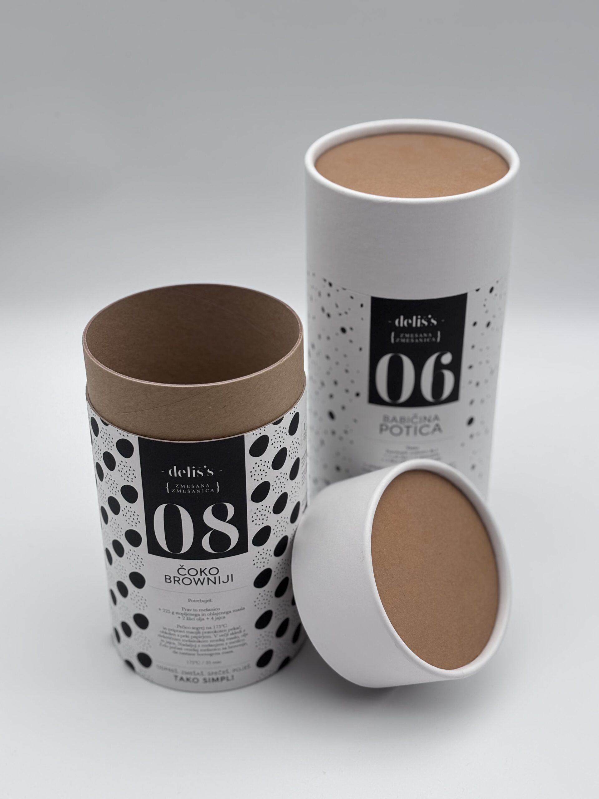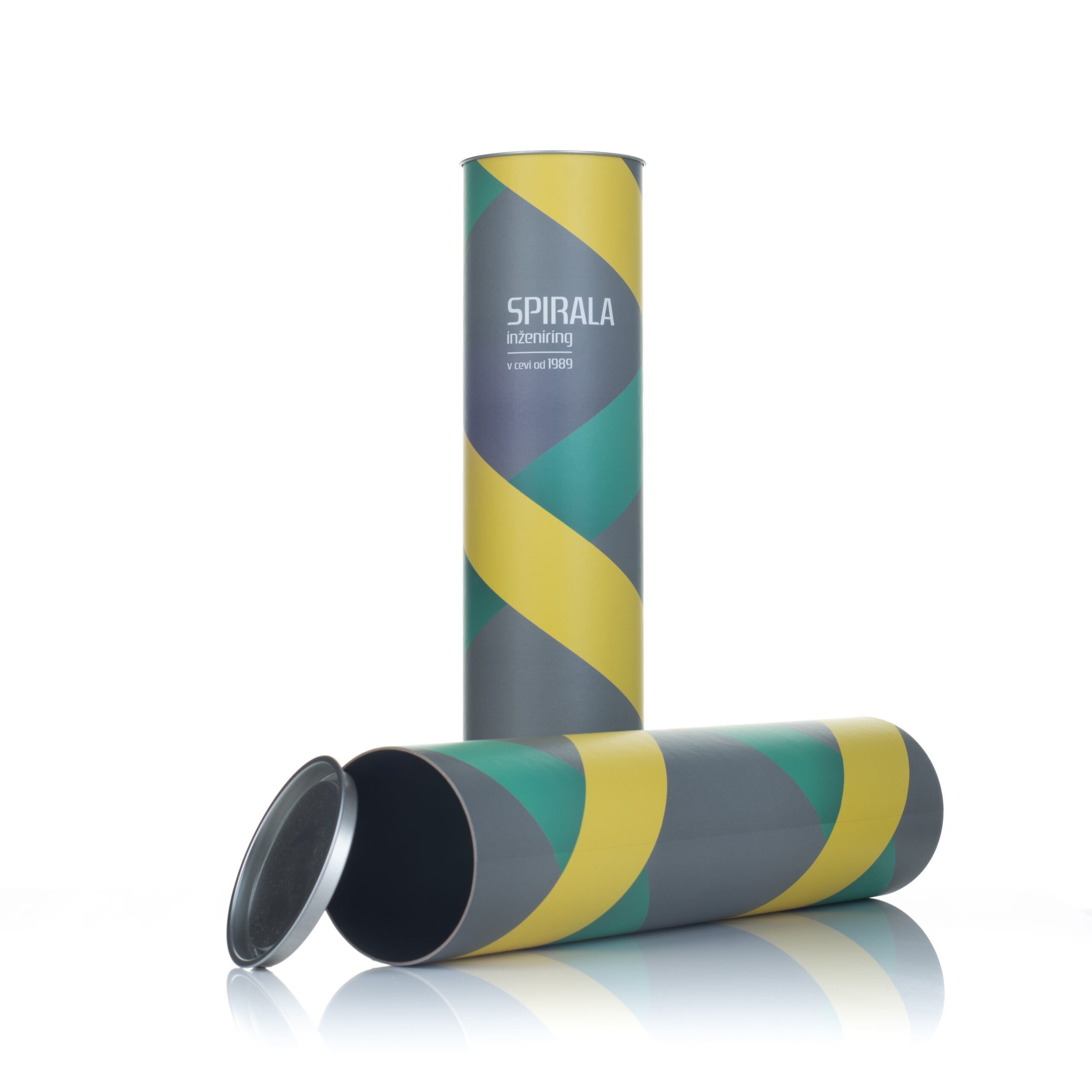 Enodelni kontejner, zaprt spodaj in zgoraj s PE ali kovinskim pokrovom. Zunanja površina je spiralno navita ali paralelno kaširana z ovojno etiketo. Izdelujemo jih v naslednjih notranjih premerih : fi 64, 80, 99 mm – pločevina, 56, 60, 64,77, 80, 99, 120, 140 mm – PE pokrov.