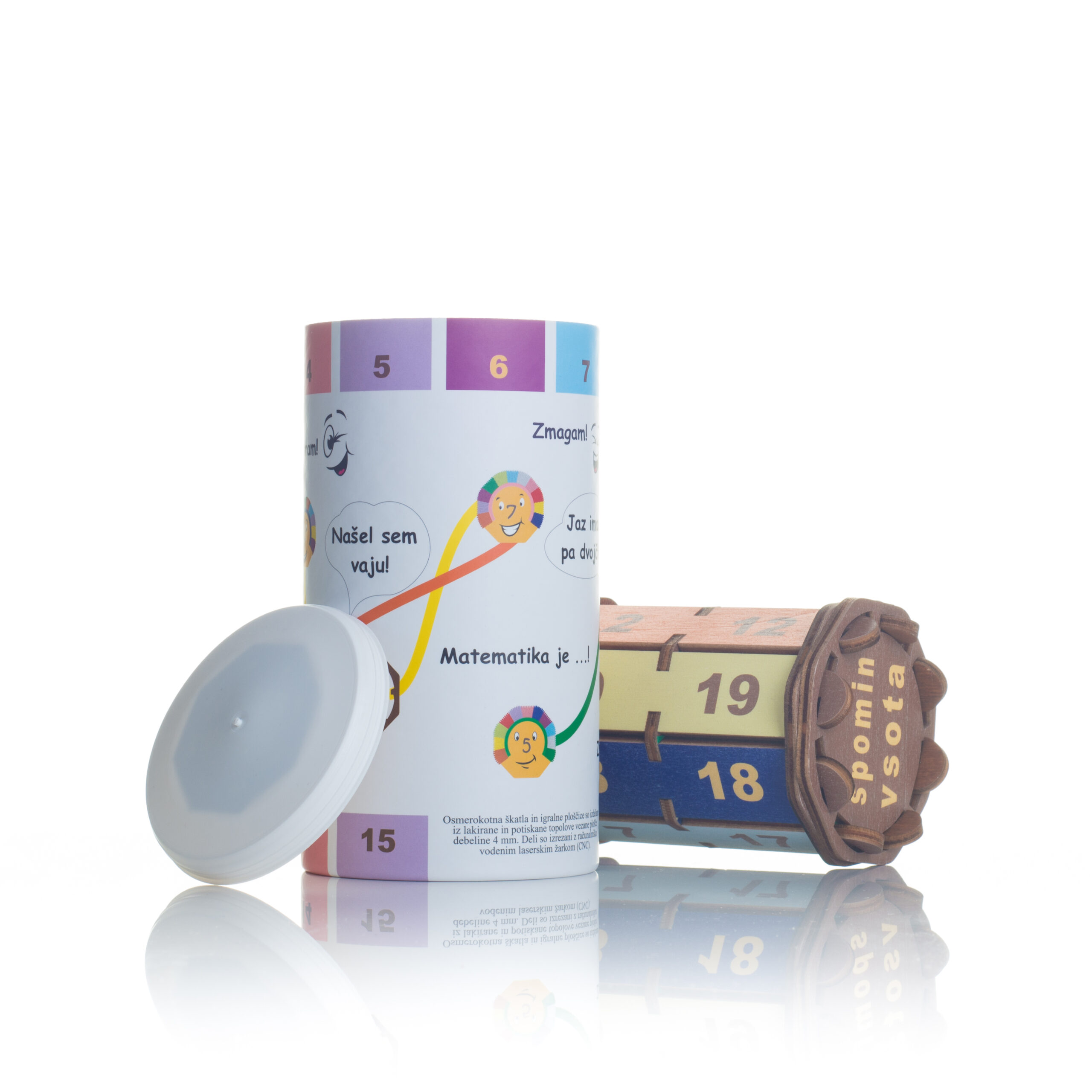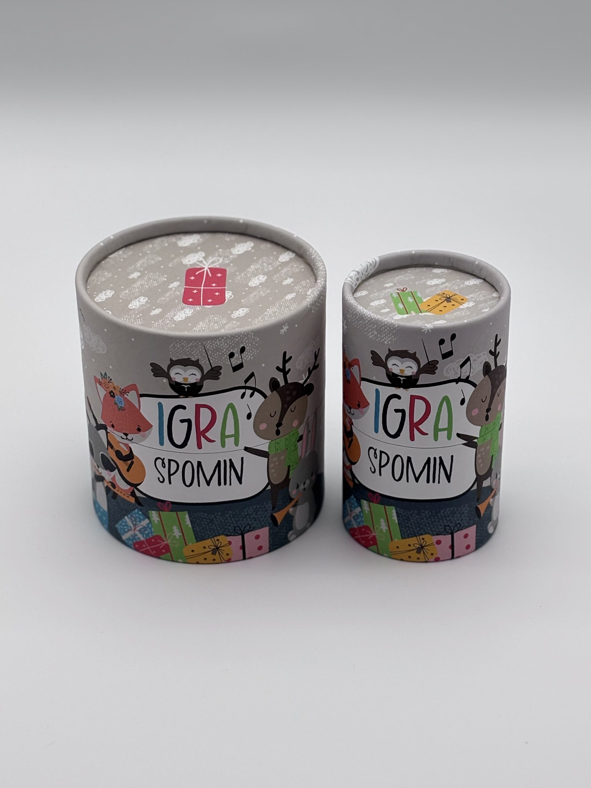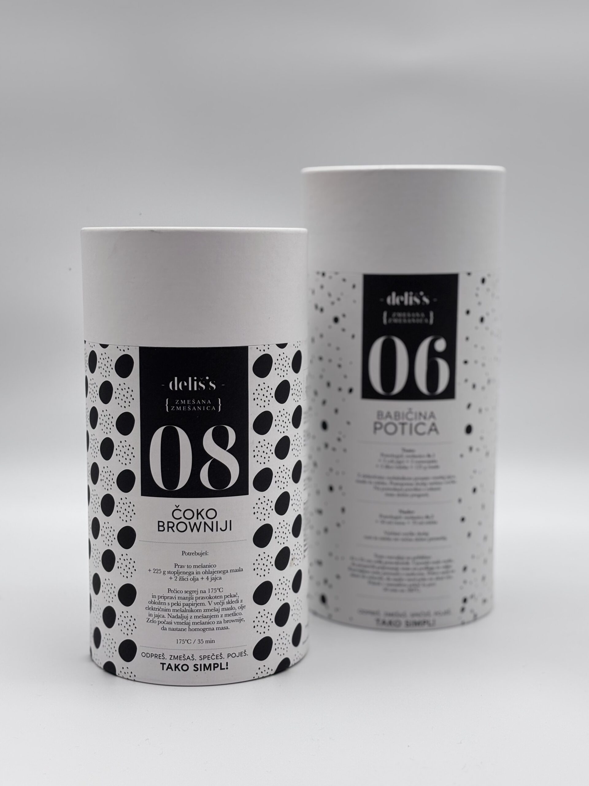 Embalaža je izdelana iz dveh delov, ki teleskopsko nalegata eden na drugega. Vsak del je na eni strani zaprt. Zapiranje je lahko izvedeno z pločevino, kartonskim robljenjem ali pa PE pokrovi. Zunanja površina šatulje je spiralno navita ali paralelno kaširana z ovojno etiketo. Kartonski diski so lahko zunaj pokaširani z etiketo enake kvalitete kot ovojna etiketa. Izdelujemo jih v naslednjih notranjih premerih : fi 64, 80, 99 mm – zapiranje pločevina, fi 55/58, 60/62, 64/67, 67/70, 77/80, 99/102, 102/105,120/123, 151/154 mm – zapiranje karton.